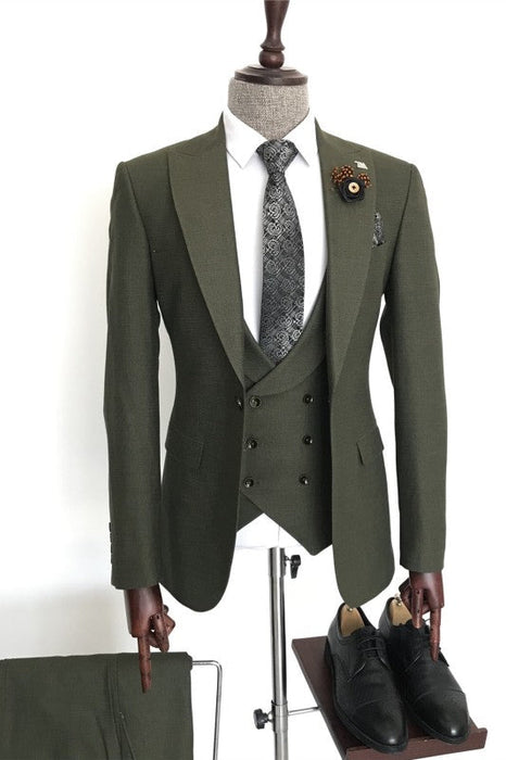 Fancy Dark Green Peaked Lapel Business Suits Men Three Pieces Tuxedos Wedding Suits