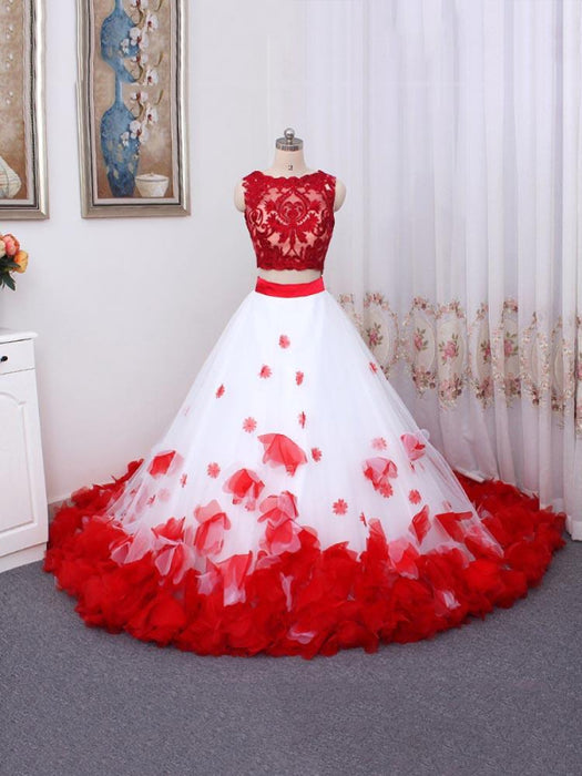 Romantic Lace Flower Beach Tulle Wedding Dresses