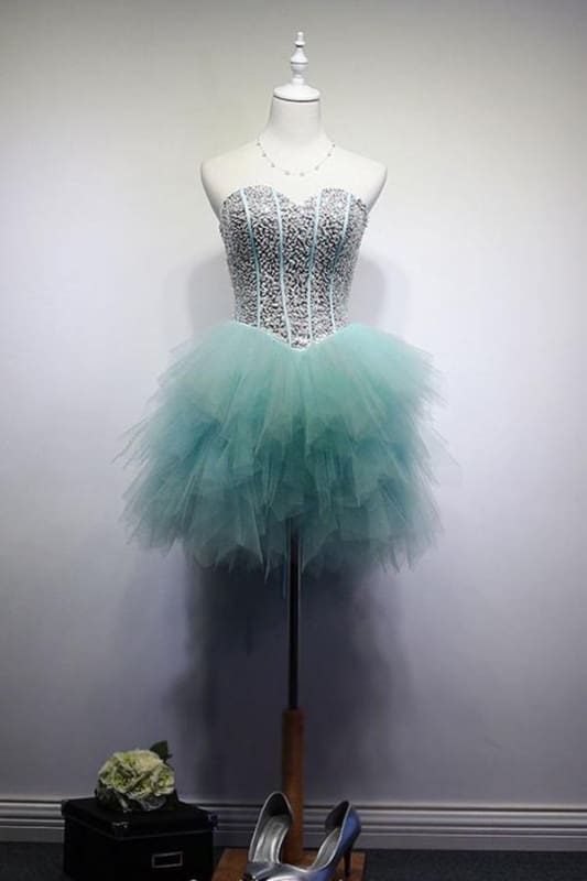 Pool Blue Sparkly Sweetheart Sequins Tulle Short Cocktail Mini Homecoming Dress