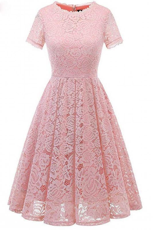 Short Sleeve Office Lace Ladies Knee-Length Dress