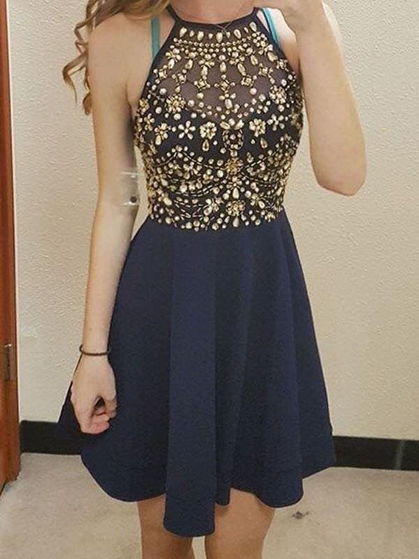 Bridelily A-Line Chiffon Scoop Sleeveless Short/Mini With Beading Prom Dresses