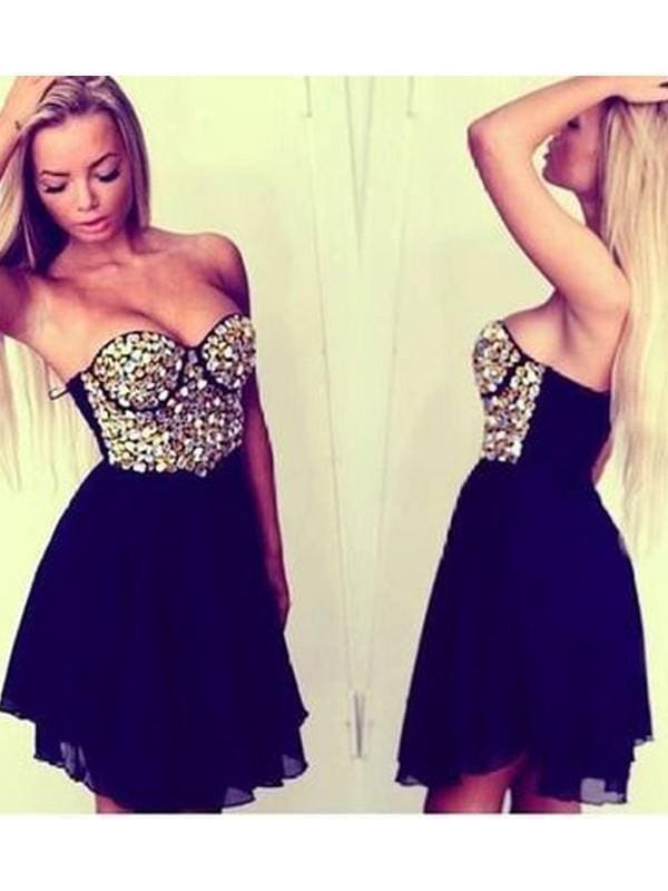 Bridelily A-Line Chiffon Sweetheart Short/Mini Party Dresses With Beading