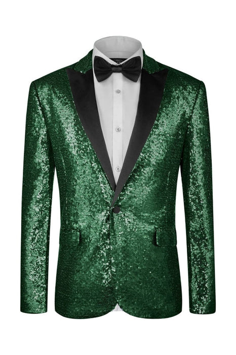 Glitter Dark Green Peaked Lapel Sequins Prom Suits for Men