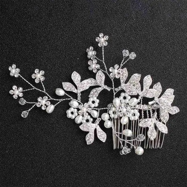 The second is a handmade wedding comb, it has the charming pearls ,luxury crystal,chic leaves and vintage flower design, Wearing it will let us feel like that we are in a dreamy forest. It use a lot of flower details to interpret the comb. They will giving the brides a new feeling, it feels like you are a princess in fairy tales.