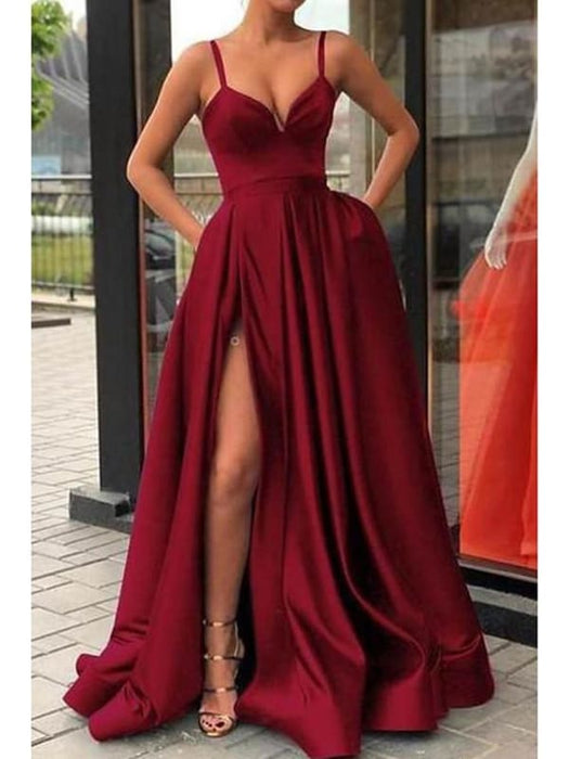 A-Line Sexy Red Quinceanera Formal Evening Dress V Neck Sleeveless Sweep \ Brush Train Jersey