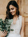 Simple Wedding Dress Tulle A Line V Neck Sleeveless Lace Floor Length Bridal Dresses