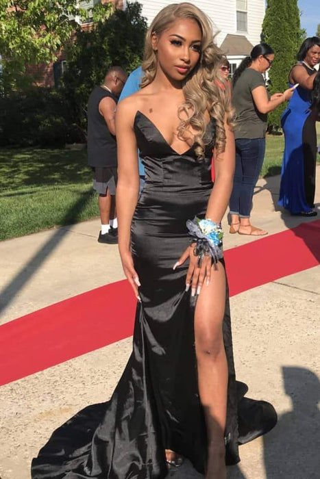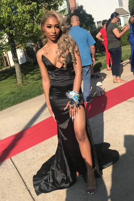 Modest V-Neck Side Slit Sleeveless Floor Length Prom Dresses