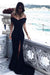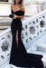 Sexy Black Off the Shoulder Split Mermaid Sweep Train Prom Dress Evening Dresses