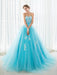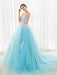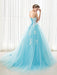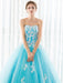 Blue Wedding Dress Lace Applique Tulle Court Train Strapless Sweetheart Lace-Up A-Line Bridal Gown