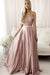 2 Pieces Off Shoulder Pink Lace Long Prom, Two Pieces Pink Lace Formal, Pink Lace Evening