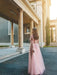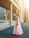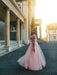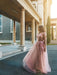 A-Line/Princess Tulle Applique Long Sleeves V-neck Floor-Length Dresses