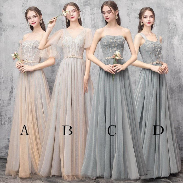 Elegant Off Shoulder Floor Length Tulle Prom Dress Bridesmaid Dresses