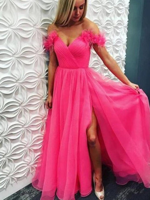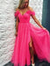 Off Shoulder Hot Pink Long Prom with Slit, Hot Pink Off Shoulder the Long Formal Evening