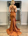 Sexy V Neck Backless Mermaid Clay Satin Long Prom, Mermaid Clay Formal, Clay Evening
