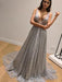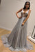 Shiny V Neck Backless Silver Grey Long Prom, Backless Silver Grey Formal Graduation Evening