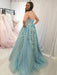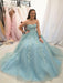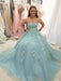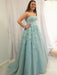 Sweetheart Neck Strapless Blue Lace Long Prom, Ice Blue Lace Formal Graduation Evening