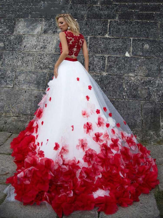 Romantic Lace Flower Beach Tulle Wedding Dresses