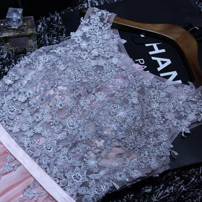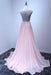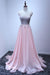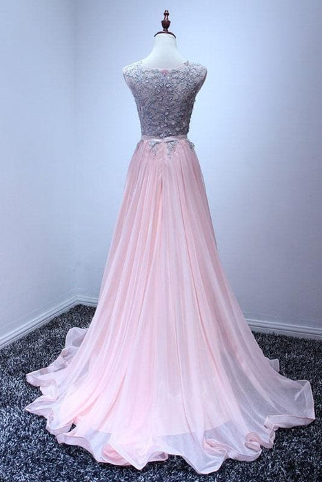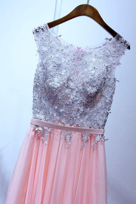 A Line Sleeveless Chiffon Long Appliqued Prom Dress Pink Formal Dresses