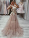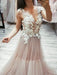 Sleeveless V-Neck Sweep/Brush A-line Train With Applique Tulle Dresses