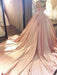 This sleeveless ball gown combines luxurious satin and intricate lace detailing, featuring a romantic sweetheart neckline that complements the bodice. The court train adds a regal touch, creating a stunning silhouette for formal occasions. Designed for elegance and comfort, this dress is perfect for making a memorable statement at weddings or grand events.