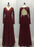 Burgundy Sleeve V-neck Backless Lace Top Chiffon Long Bridesmaid Prom Dress