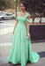 Mint Green Straps Sweep Train Prom Dress Simple A Line Long Evening Dresses