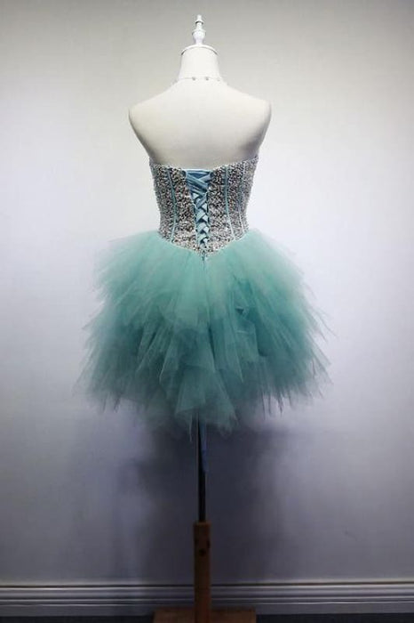 Pool Blue Sparkly Sweetheart Sequins Tulle Short Cocktail Mini Homecoming Dress
