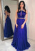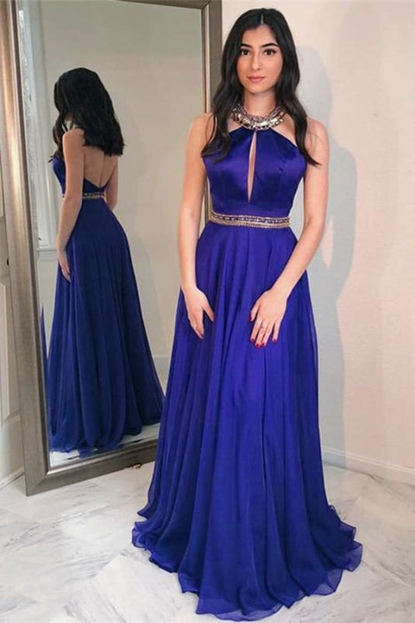 Royal Blue Floor Length Jewel Long Prom with Beads Sexy Backless Evening Dress