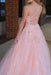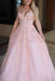 Spaghetti Straps Pink Prom Dress with Appliques Beading Formal Gown