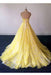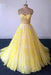 Yellow Lace Strapless Long Graduation Sweetheart Prom Dress For Teens