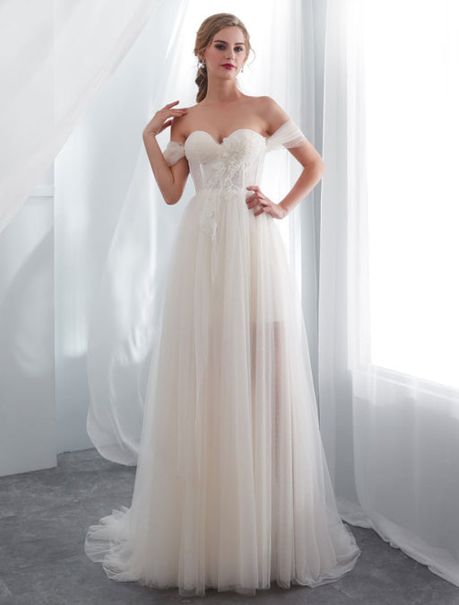 Spaghetti Strapes Sweetheart A-Line Appliques Lace Ball Gown Wedding Dress