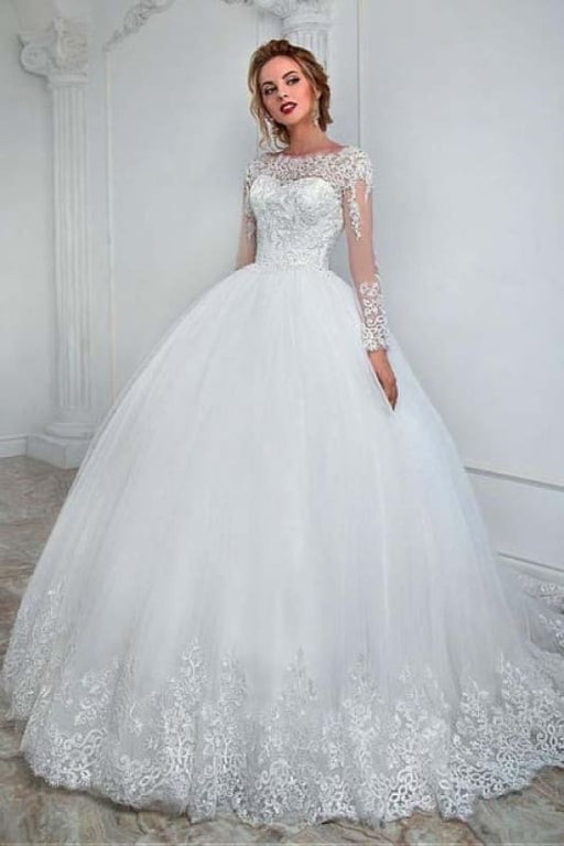 V-Neck Appliques Lace Long Sleeves A-Line Wedding Dress