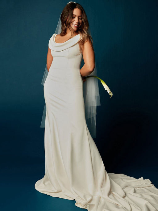 Gorgeous Off-the-Shoulder Crystal Mermaid Wedding Dresses with Sweep Train