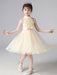 Champagne Halter Flower Girl Dresses Sleeveless Cotton Tulle Embroidered Formal Kids Pageant Dresses