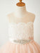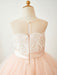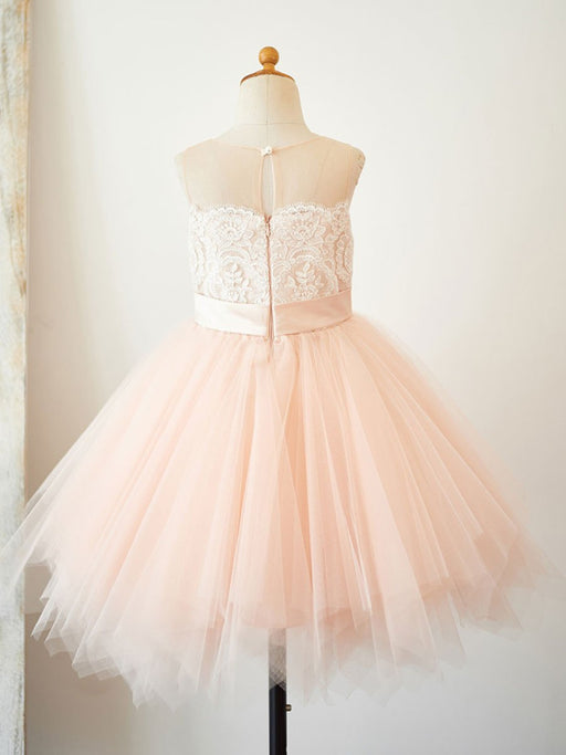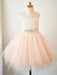 Cute Peach Short Tulle Lace Flower Girl Dresses Jewel Neck Sleeveless Knee-Length Princess Silhouette Kids Party Dresses