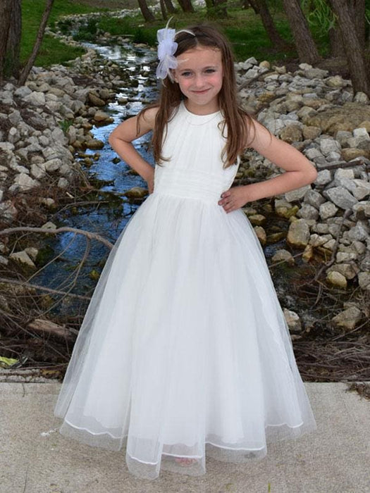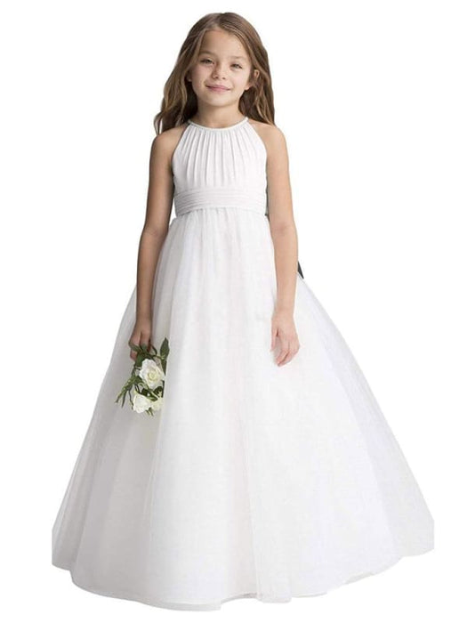 Princess Silhouette Pleated Flower Girl Dresses White Sleeveless Kids Party Dresses