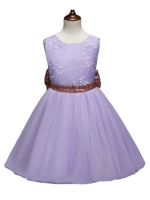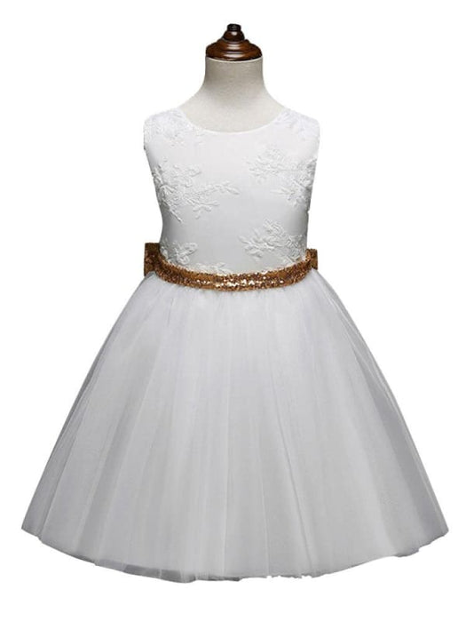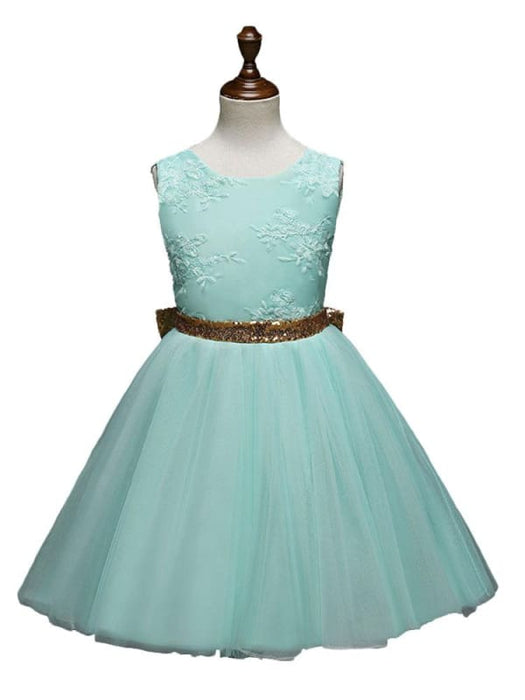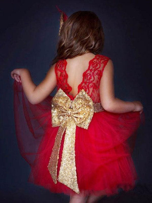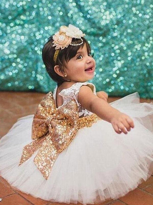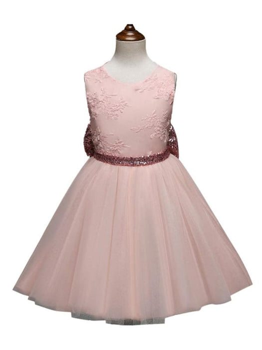 Sleeveless Tulle Flower Girl Dresses with Sparkly Sequins Bows Formal Kids Party Dresses