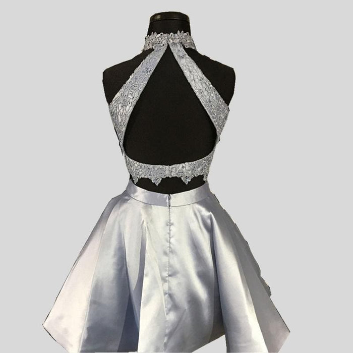 Awesome Affordable Princess Halter Two Piece Homecoming Mini Sleeveless Lace Short Prom Dresses