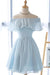Light Blue Off the Shoulder Chiffon Homecoming Cute Short Graduation Dress