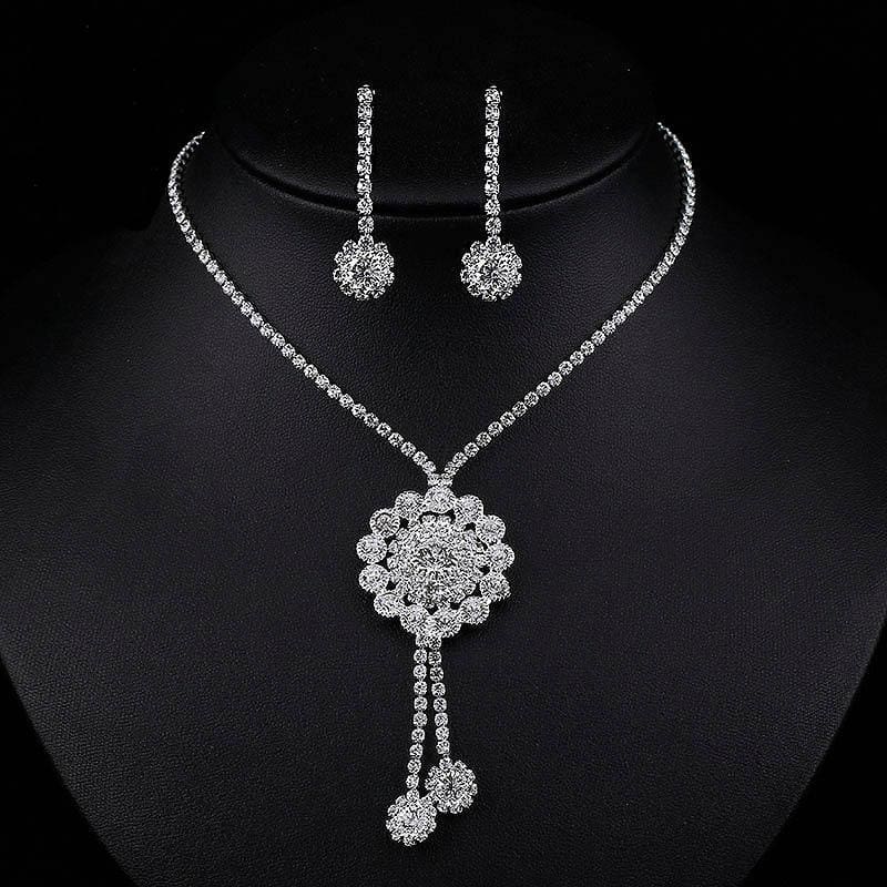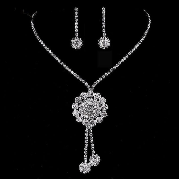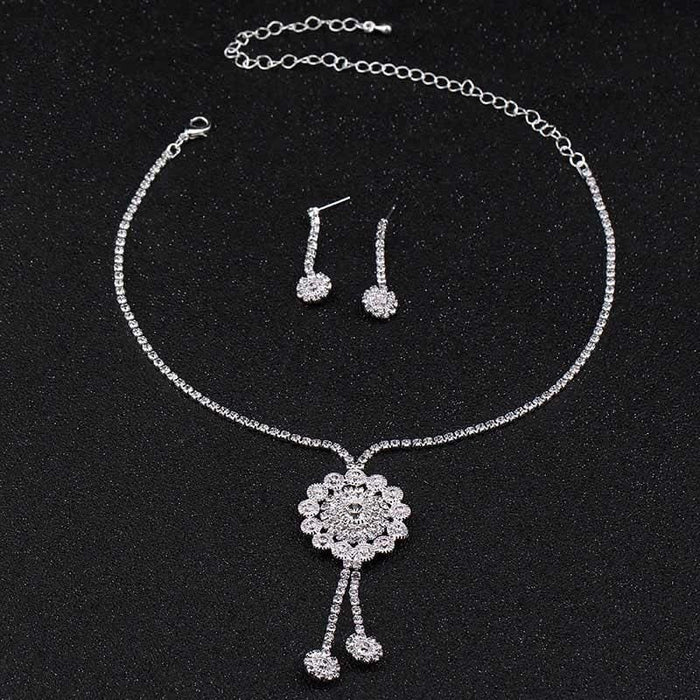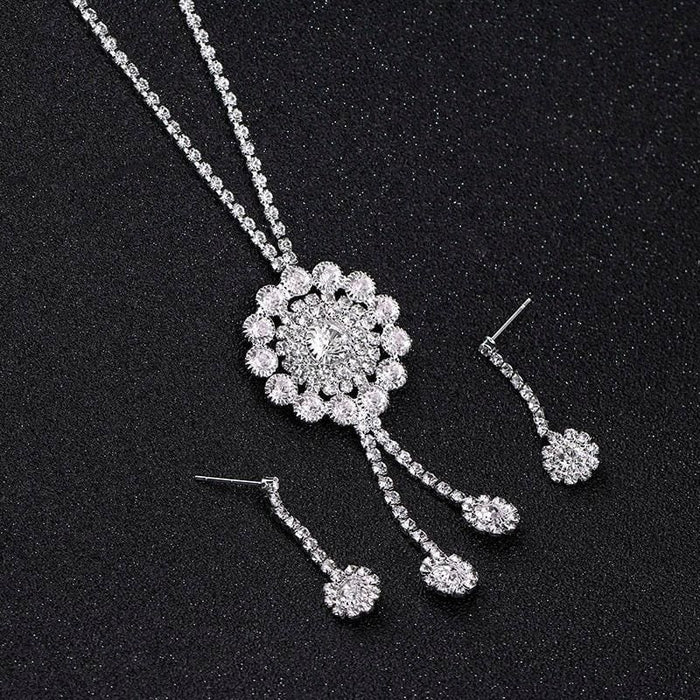 Flower Style Crystal Necklace Earrings Wedding Jewelry Sets | Bridelily