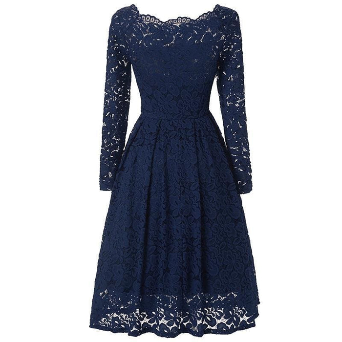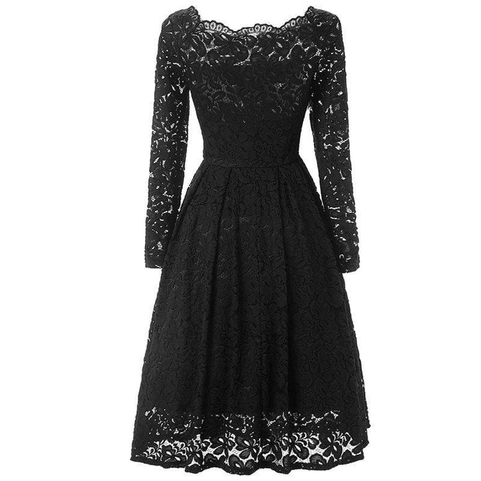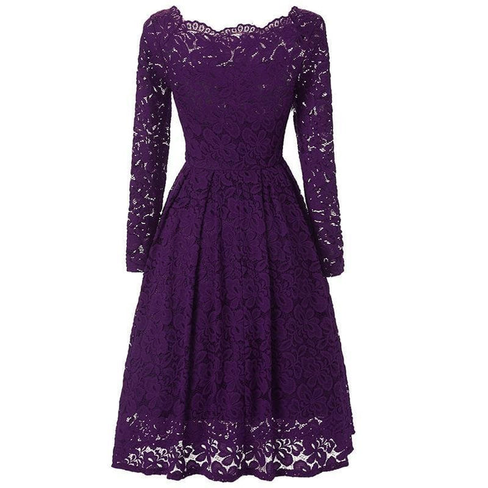 A| Bridelily Plus Size Floral Slash Hals Guipure-Spitze A-Linie Midi-Kleid