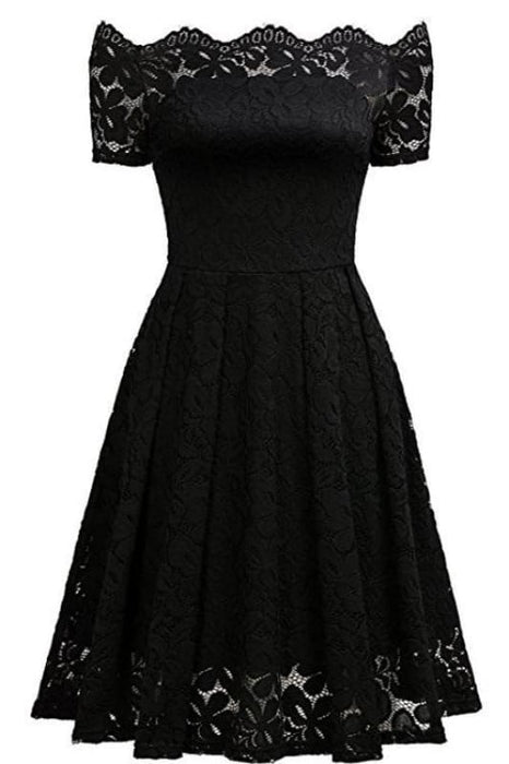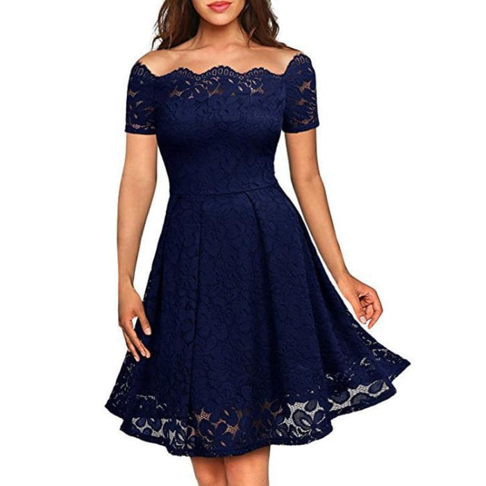 A| Bridelily Solid Lace Peasant Off the Shoulder A-line Dress