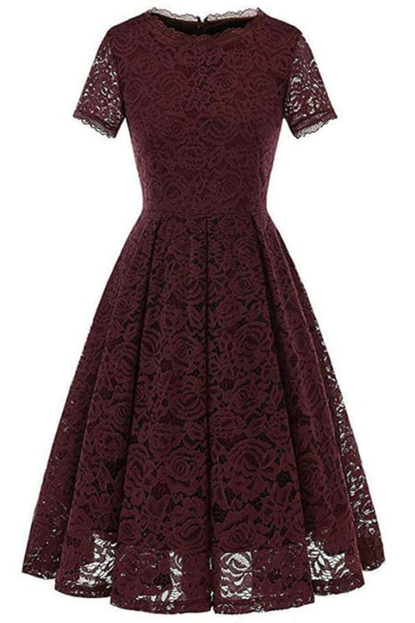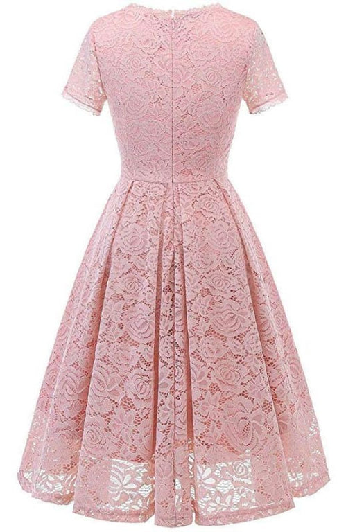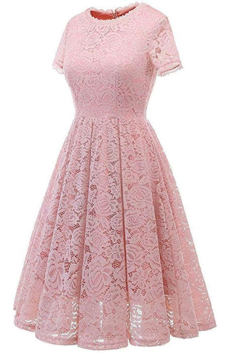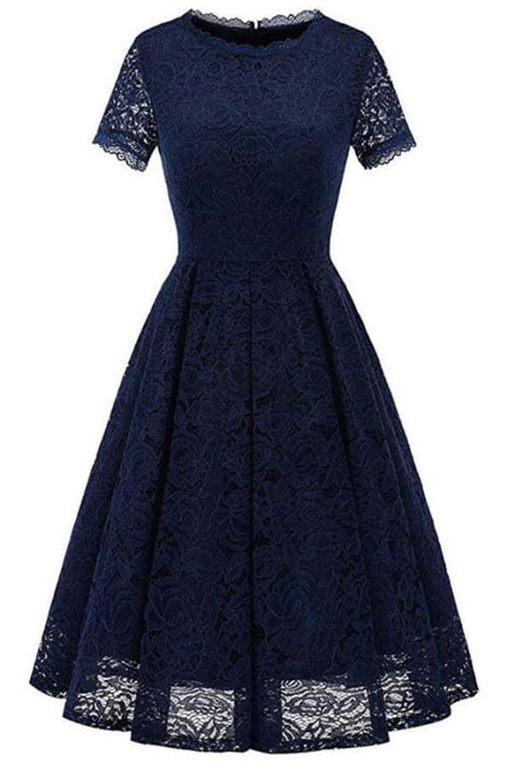 Short Sleeve Office Lace Ladies Knee-Length Dress