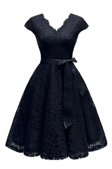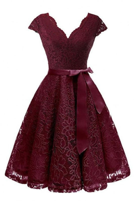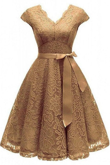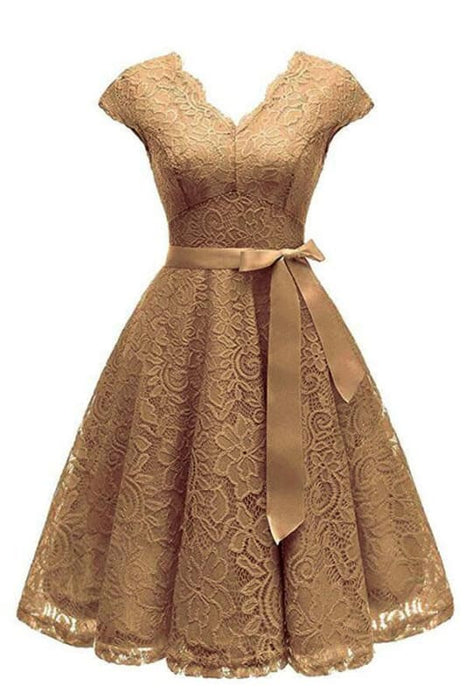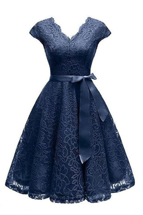 V-Neck Lace Knee-Length With Short Sleeves Dress