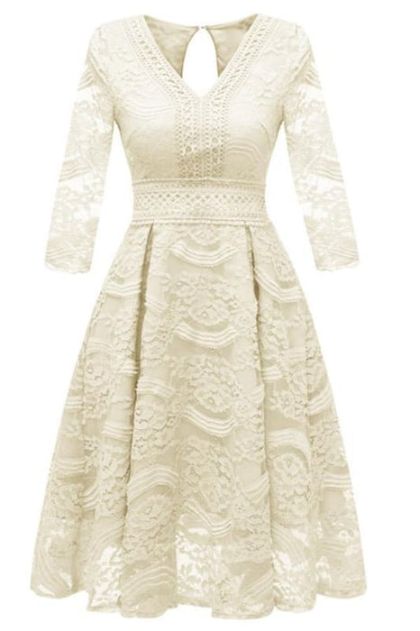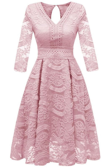 Street Lace 3/4 Sleeves Pink Flower Party Ball Gown