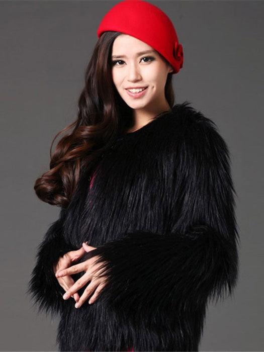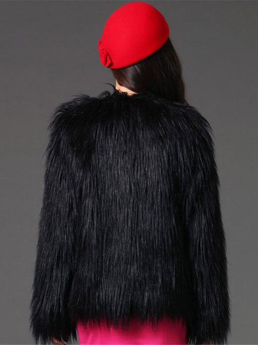 Black Winter Coat Faux Fur Round Collar Women'S Fluffy Coat And Jacket