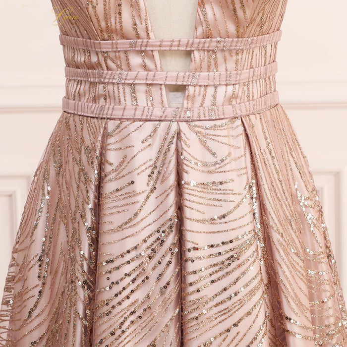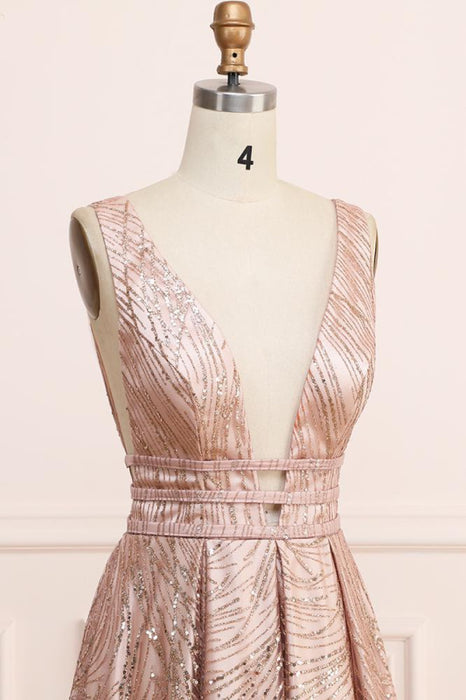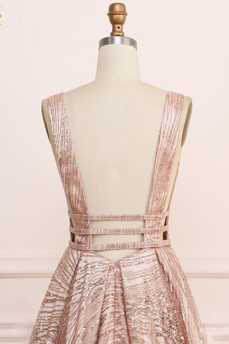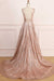 A Line Deep V Neck Long Prom with Sequins Glitter Sleeveless Evening Dress