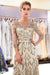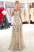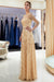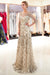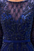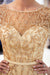 A-line Illusion Neckline Long Beading Evening Gowns with Sleeves