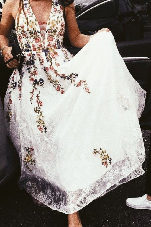 View full detailsThis sophisticated white chiffon evening dress features an A-line silhouette with a flattering V-neck and delicate straps. Its flowing long skirt c...