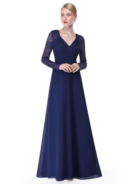 This sleeveless, floor-length evening dress features a flattering V-neck and an elegant A-line silhouette that enhances your figure. Crafted from ...